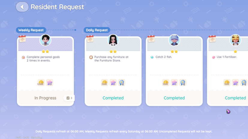 - Consistency is Key: Since these are “dailies,” checking in every day to finish your requests is the fastest way to progress.