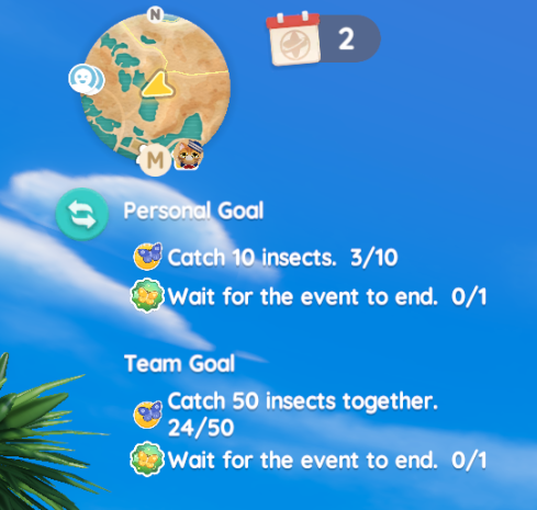 Events like bug catching and fishing often come with specific objectives. These are split into Personal and Team goals.