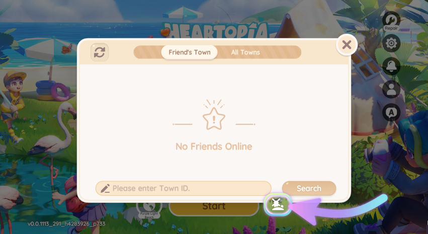 - Login Shortcut: You can also join a specific Town directly from the login menu if you have the Town ID.