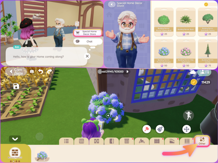- Open the Special Store: Talk to Bob and select the Special Home Decor Store option.